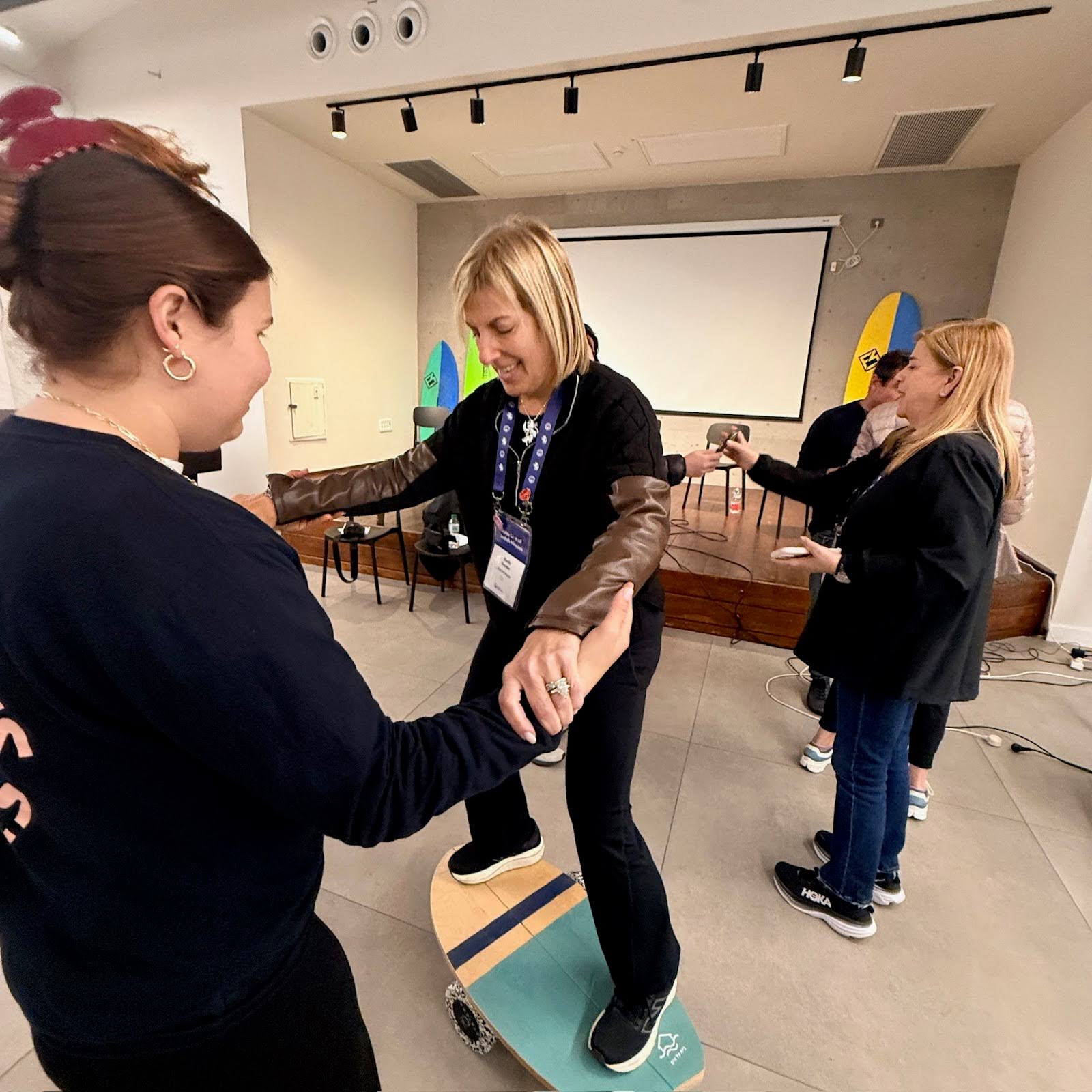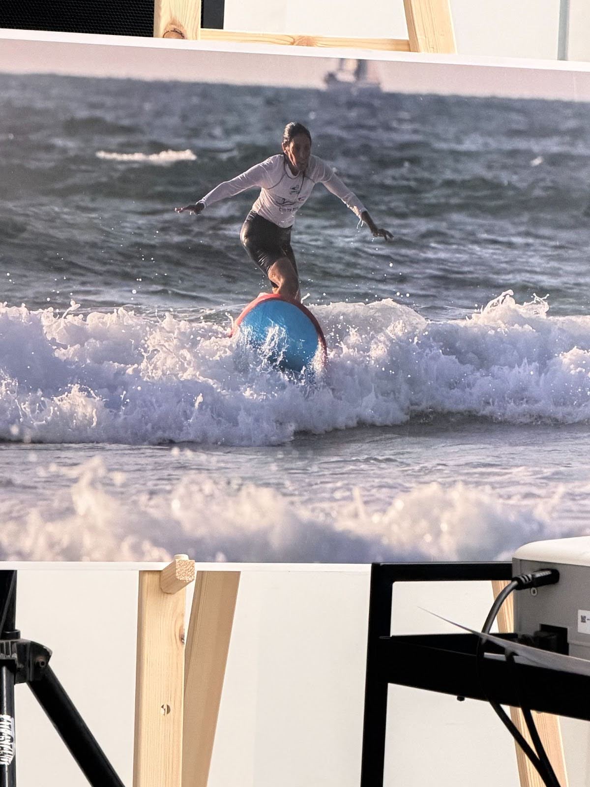 Some of us also heard from participants and volunteers from HaBeit HaYam, Home by the Sea, who explained how being in the water, and learning to surf, can be a first step in healing from trauma. Nitzan shared her story with vibrancy and energy, yet revealed that for two years she had been unable to smile. Ruama spoke of her 13 year old daughter’s kidnapping and thankful return in the first group, breaking down several times. When offered a tissue, she gently declined, saying she was no longer afraid of her tears after being unable to cry for two years. Witnessing these two women smile and cry together was a profound example of Israeli resilience.