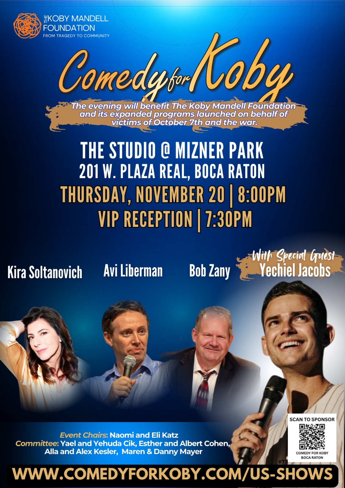 The evening will benefit The Koby Mandell Foundation and its expanded programs launched on behalf of victims of October 7th and the war.